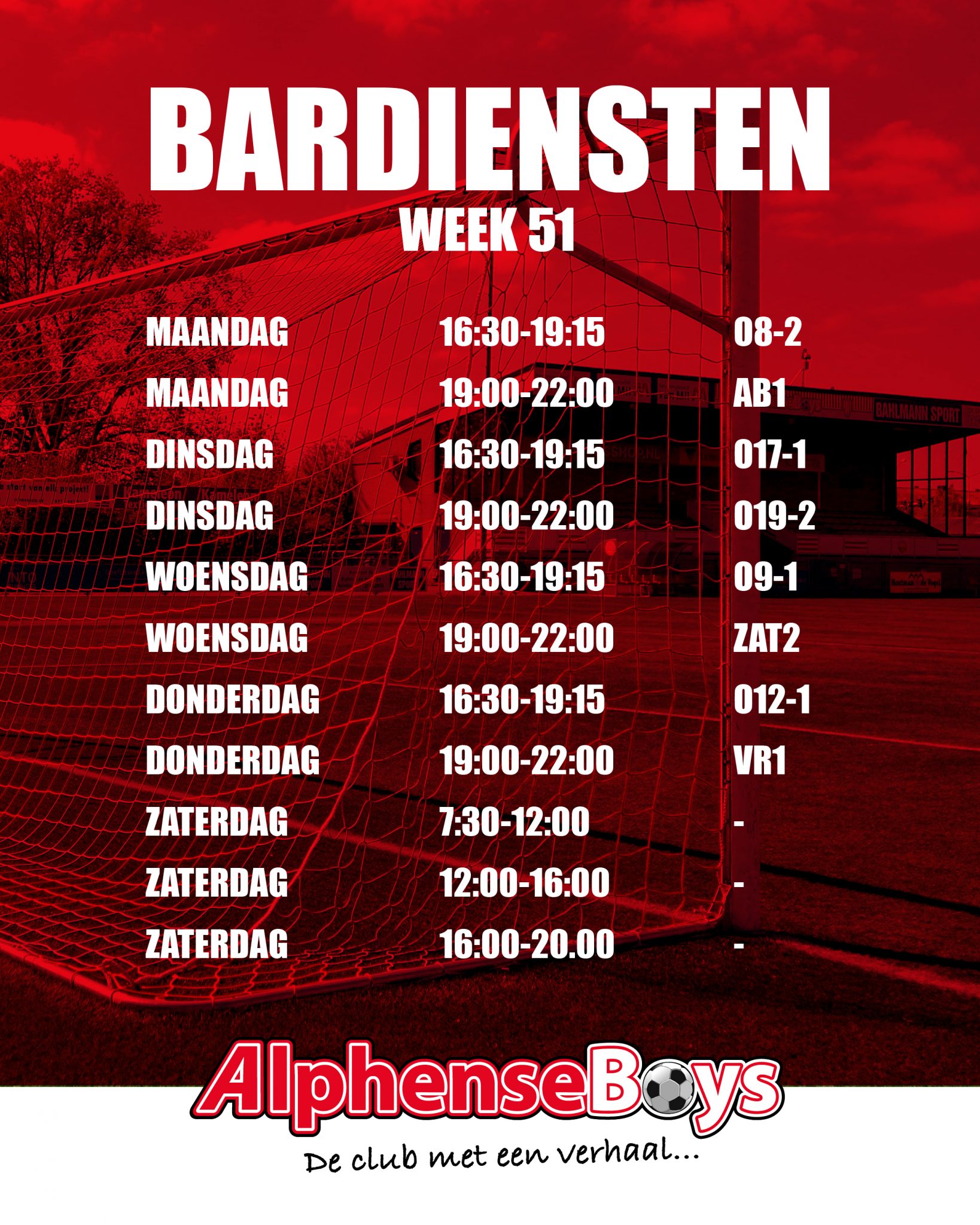 | za 13-dec. | ARC 11 | Alphense Boys 3 | 5 - 7 | regulier | ||