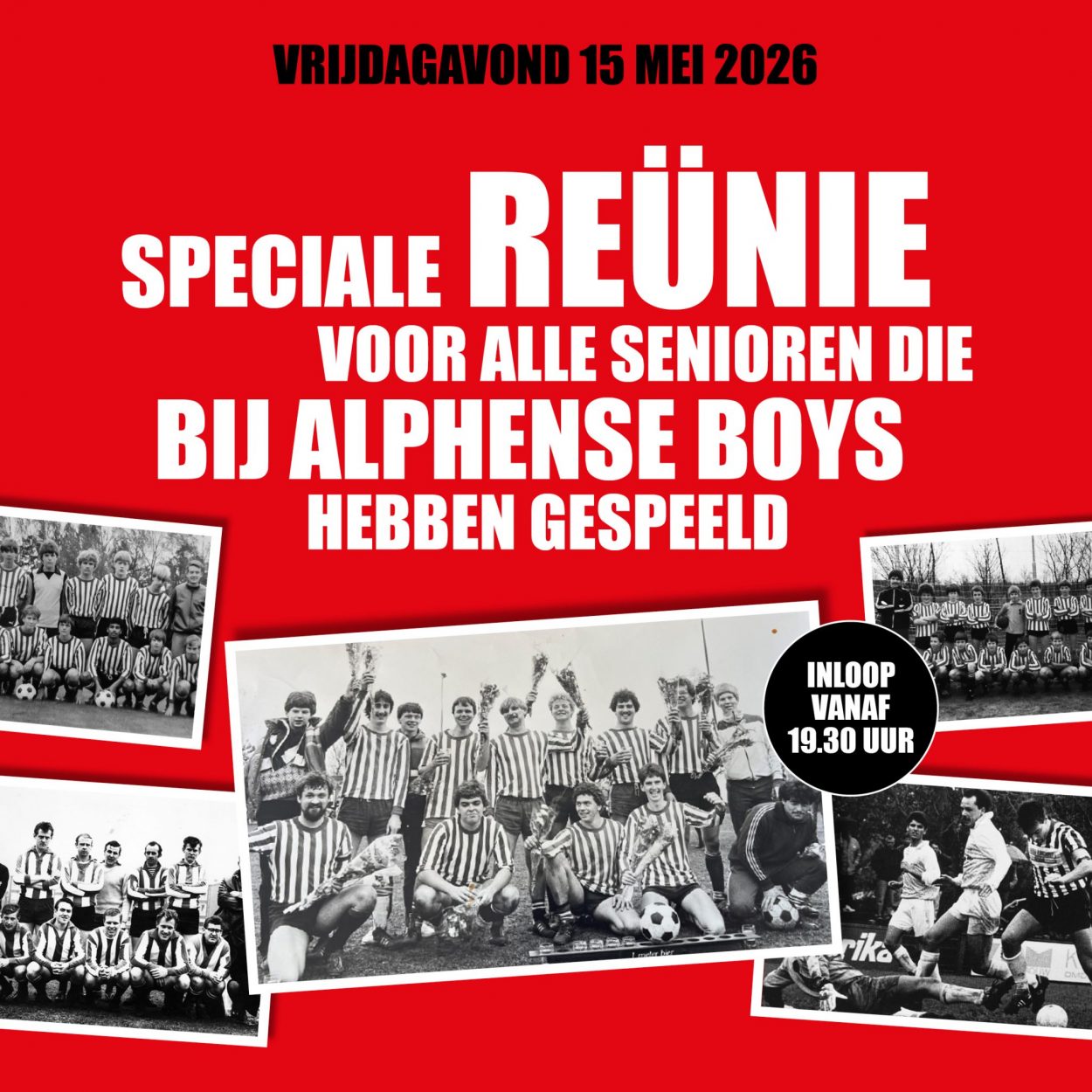 We tellen af naar de reünie voor onze seniorenleden van vroeger en nu, op vrijdagavond 15 mei a.s. Met inmiddels meer dan zestig aanmeldingen belooft dit een super gezellige bijeenkomst te worden. Heb jij je al aangemeld? Aanmelden kan hier. Vraag ook je oude ploegmaten om naar de reünie te komen, ...