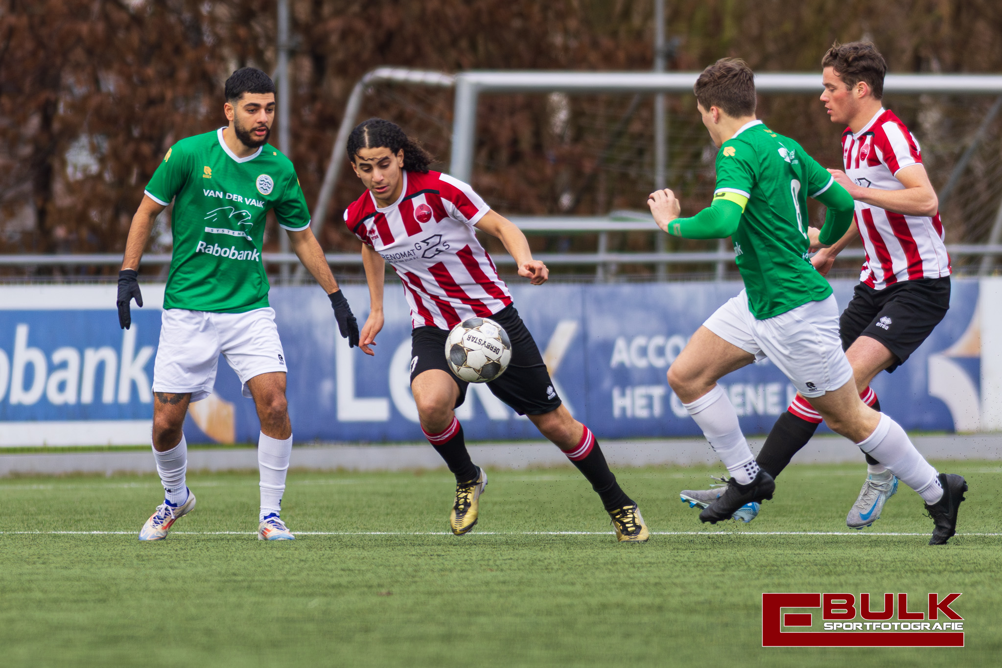 Tien minuten voor tijd keerde de keeper een schot van Xavi van Munsteren maar Charlotte-Sophie van der Weide kopte in de rebound de 0-5 bekeken binnen. De ingevallen Safouan Fatouh maakte nog de 0-6 op aangeven van Morris Dijk. Het slot akkoord was van Damian die met een knappe redding in de laatste minuut zijn doel schoonhield. Een mooie start in divisie 2 met drie punten in de verste uitwedstrijd.