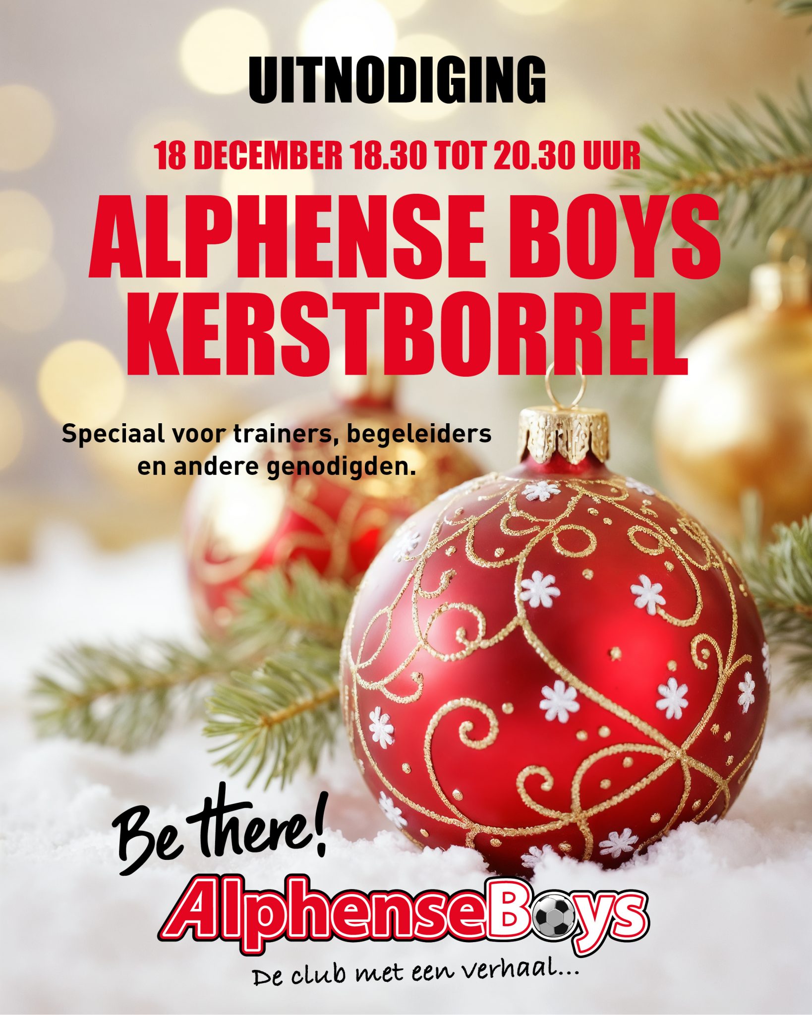 Donderdag 18 december (18.30 tot 20.30 uur) organiseren we een kerstborrel speciaal voor trainers, begeleiders en genodigden. We zouden het leuk vinden als je erbij bent. Aanmelden kan via onderstaand formulier...