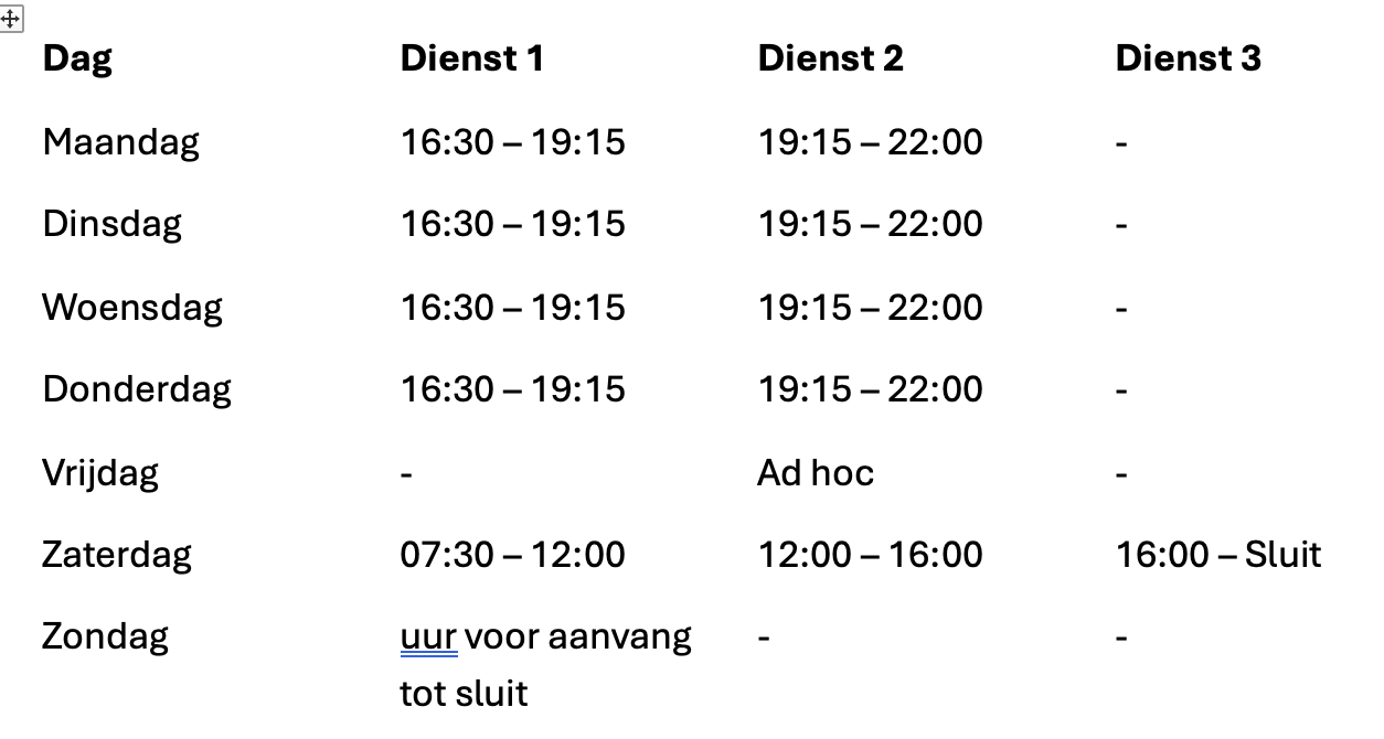 Om de contributie zo laag mogelijk te houden en voetbal voor zoveel mogelijk mensen toegankelijk te maken, hebben wij er bewust voor gekozen om geen betaalde krachten in te zetten, bijvoorbeeld in de kantine. In plaats daarvan worden de kantinediensten en andere verenigingstaken ingevuld door onze leden en hun betrokkenheid bij de club.
